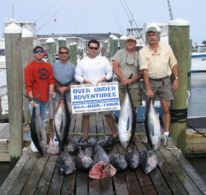 Over Under Sport Fishing offers complete Hatteras Fishing Charter Packages. Sample packages are listed below, and we can create any combination of fishing days, nights, and number of people you like. We specialize in putting together large group outtings, for up to 24 people. If you are organizing your next company fishing trip, a Cape Hatteras Fishing Chater Package would be an excellent choice. We have rooms right at our Marina, within walking distance to the boat, restaurant, and bar.